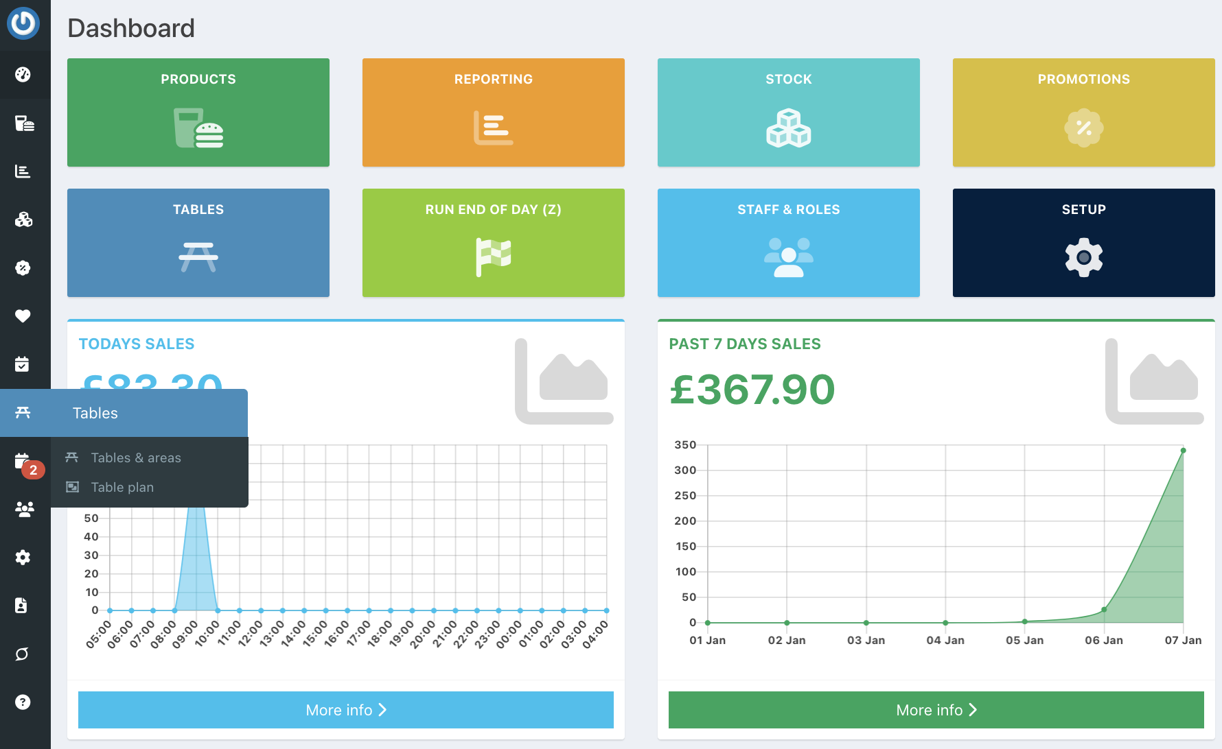 To create a table plan select Tables > Table plan, from the left hand navigation from the back office dashboard.