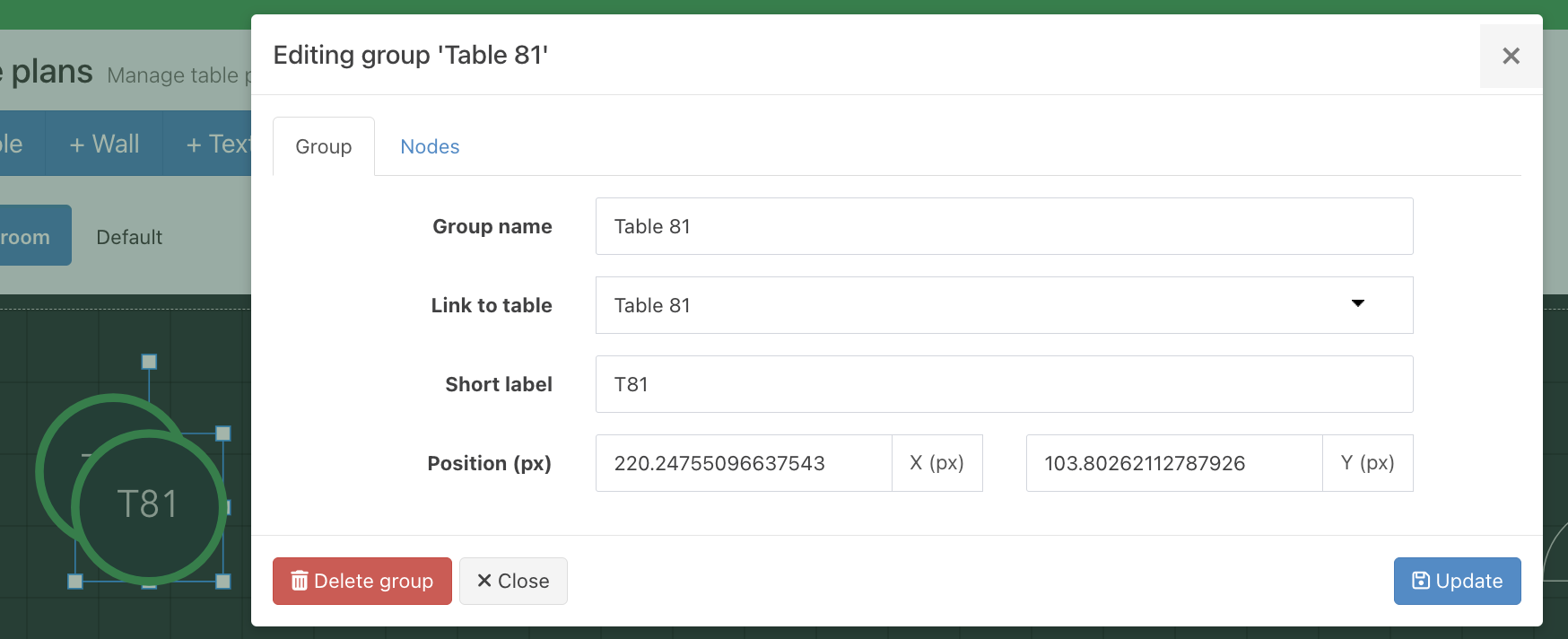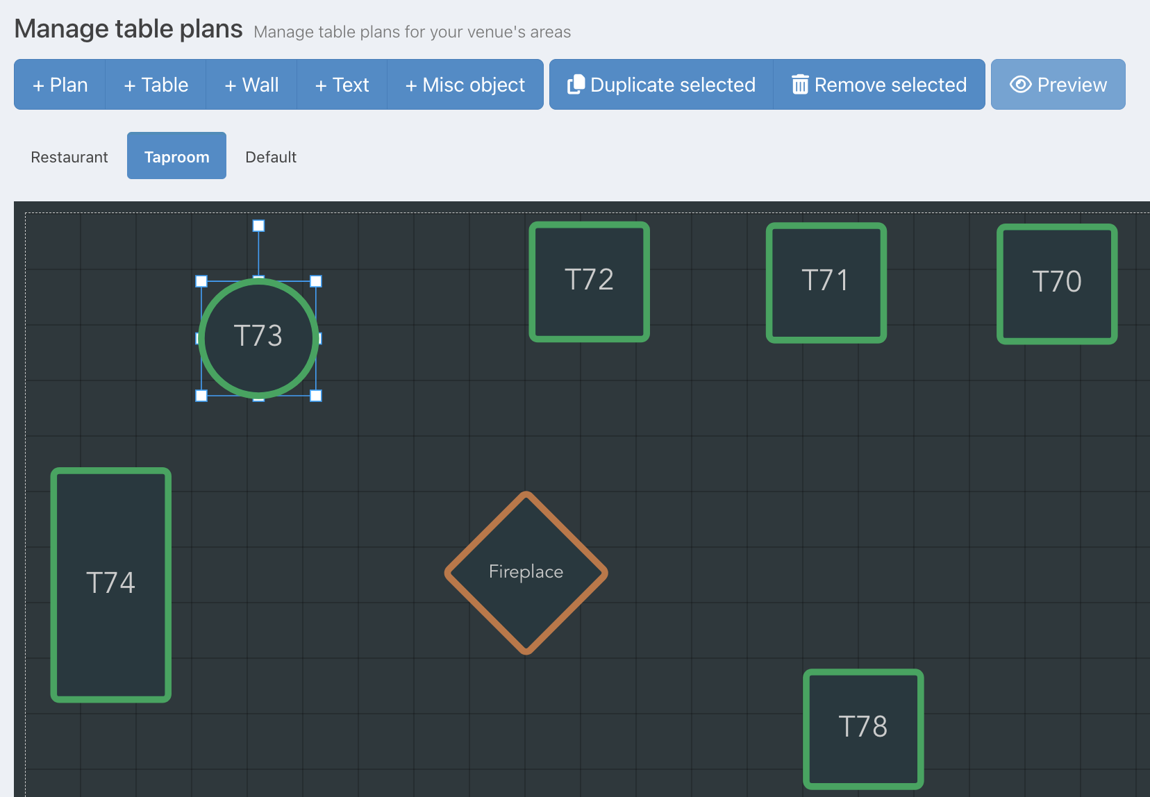 Once you have added a new table plan you can add tables or other features to it.