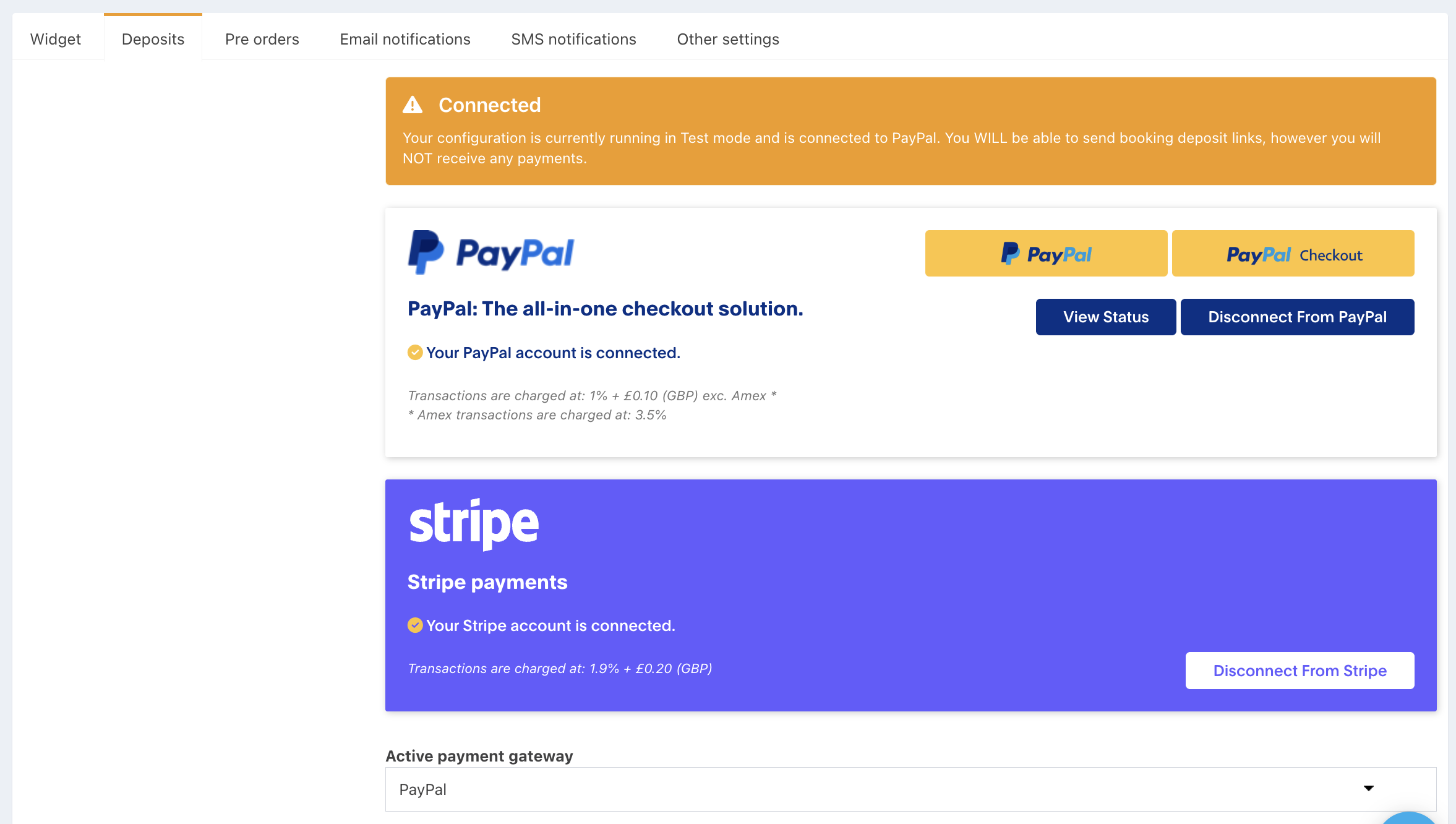 Note: You can re-check this status at any point by pressing the View status button, next to the Disconnect From PayPal button.