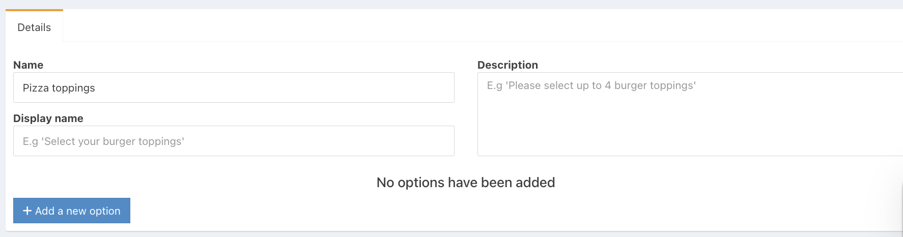 Once you are happy with the details entered, press the + button on the right-hand side to add the option and continue to add the other options.