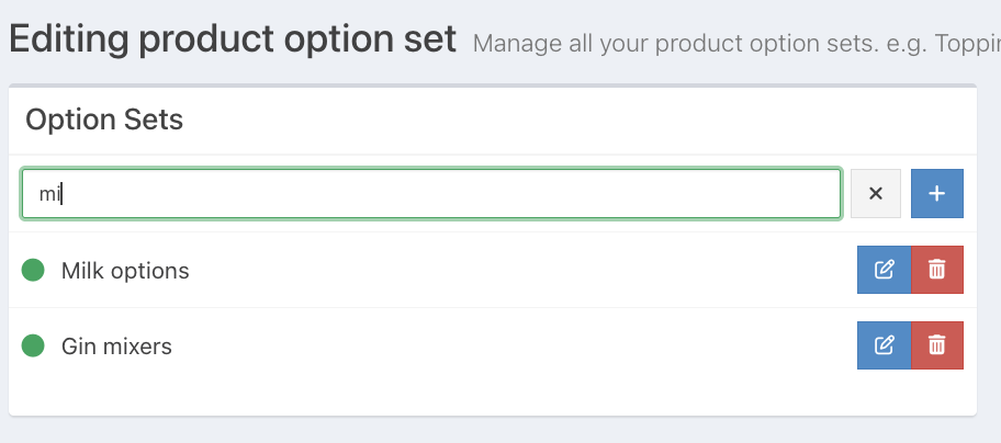 Type the name of your new option set, then click on the blue + button on the right hand side.