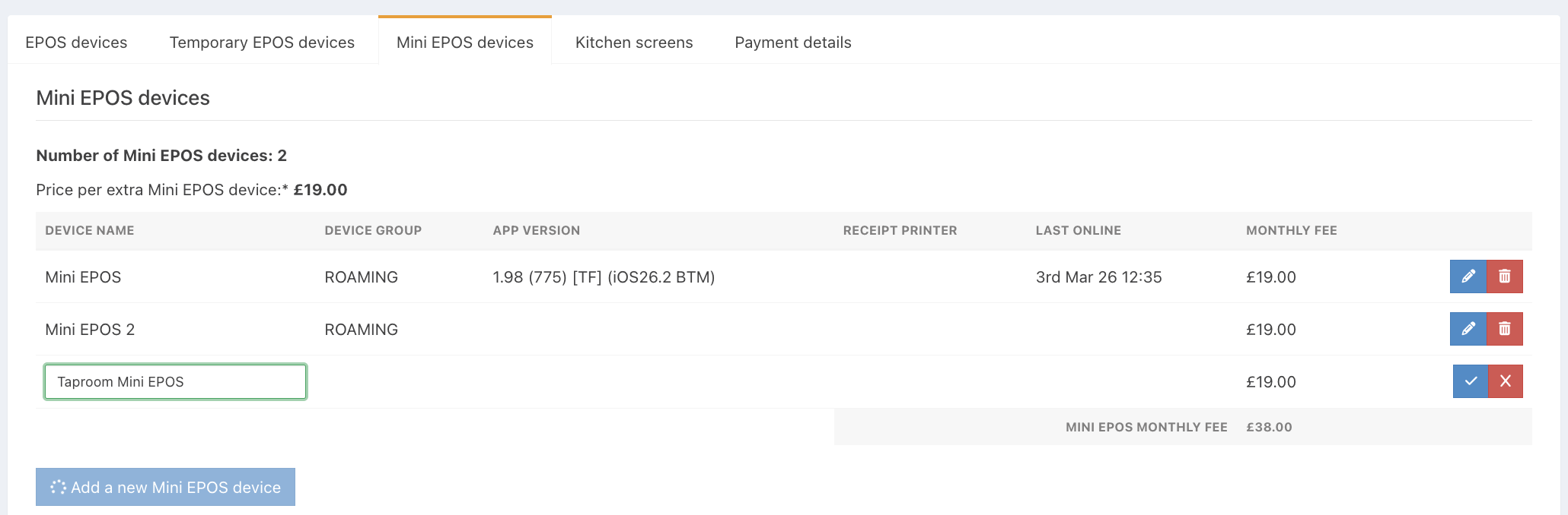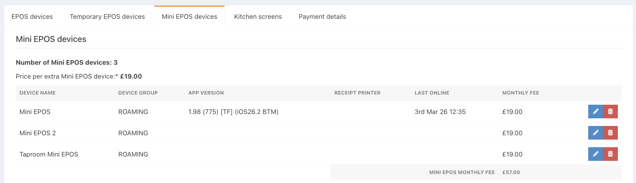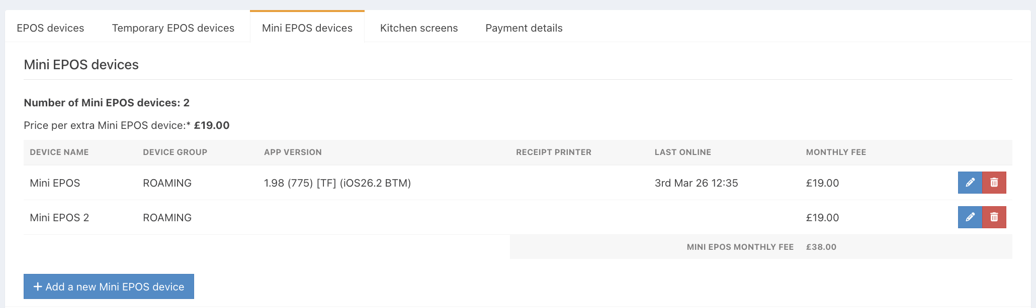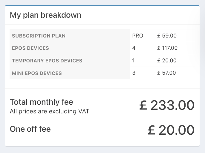 Your Mini EPOS monthly fee and Total monthly fee will update and the change will be reflected in your next invoice.