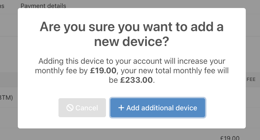You will be prompted to confirm the addition of the new Mini EPOS device, the additional monthly fee, and your total monthly fee.