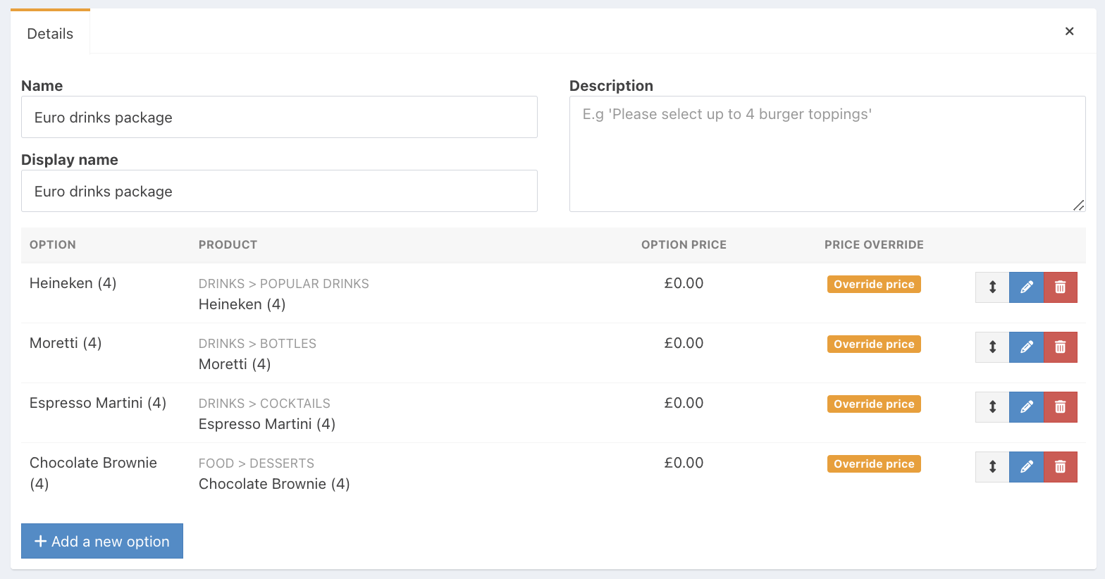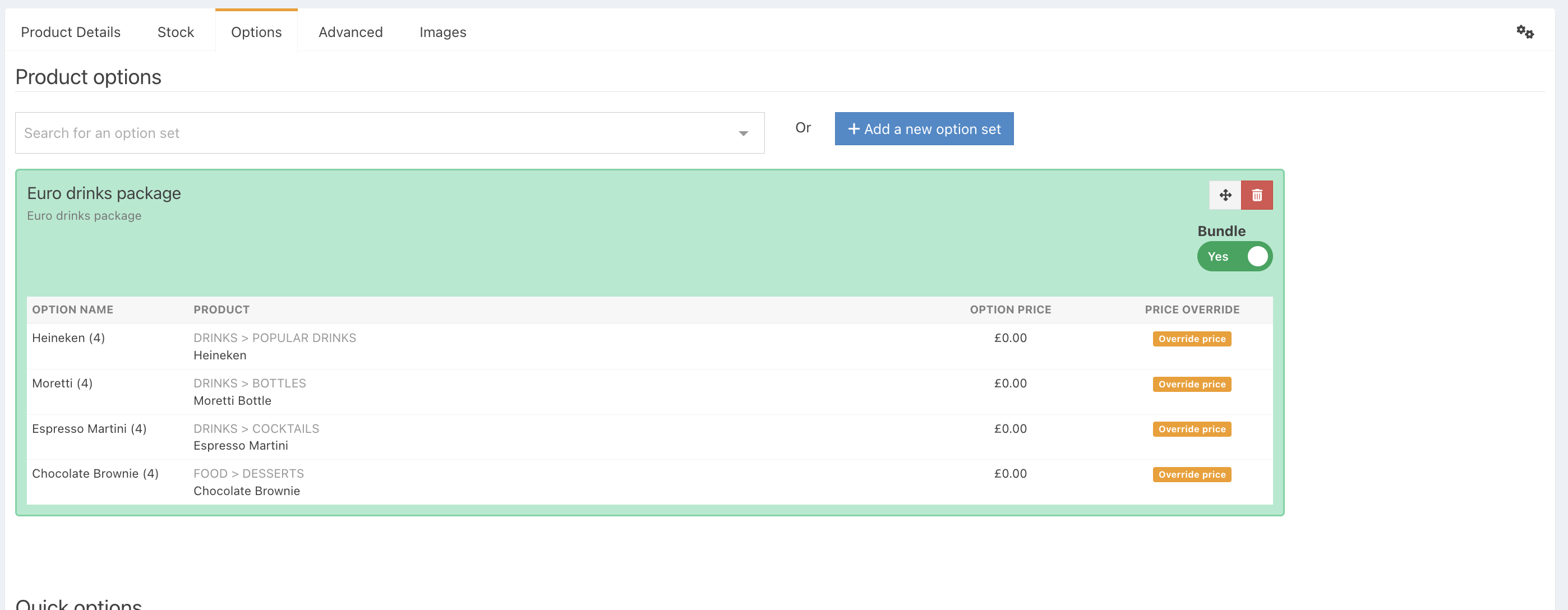 To create a Sales bundle, first create an option set with all your required items.