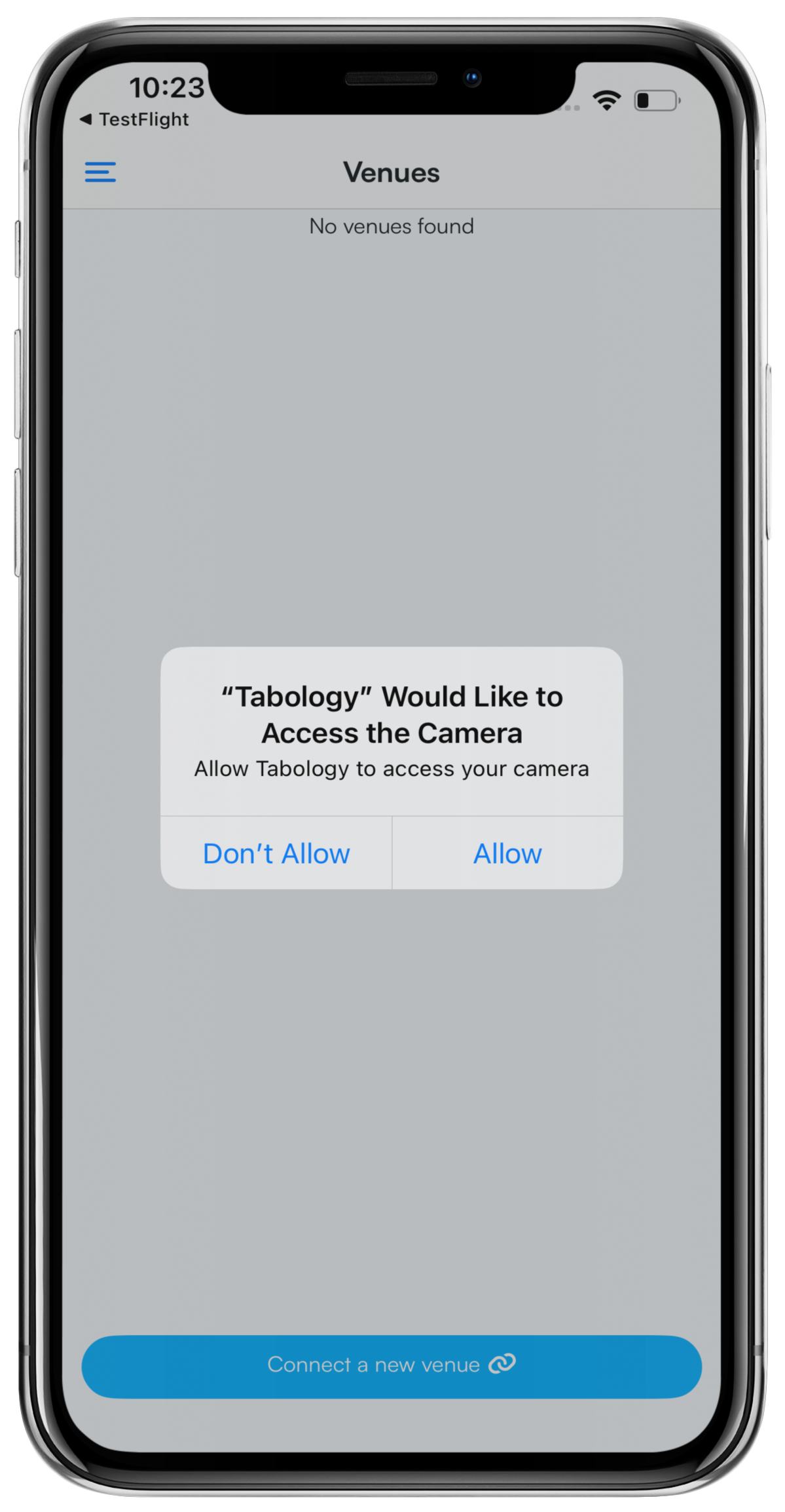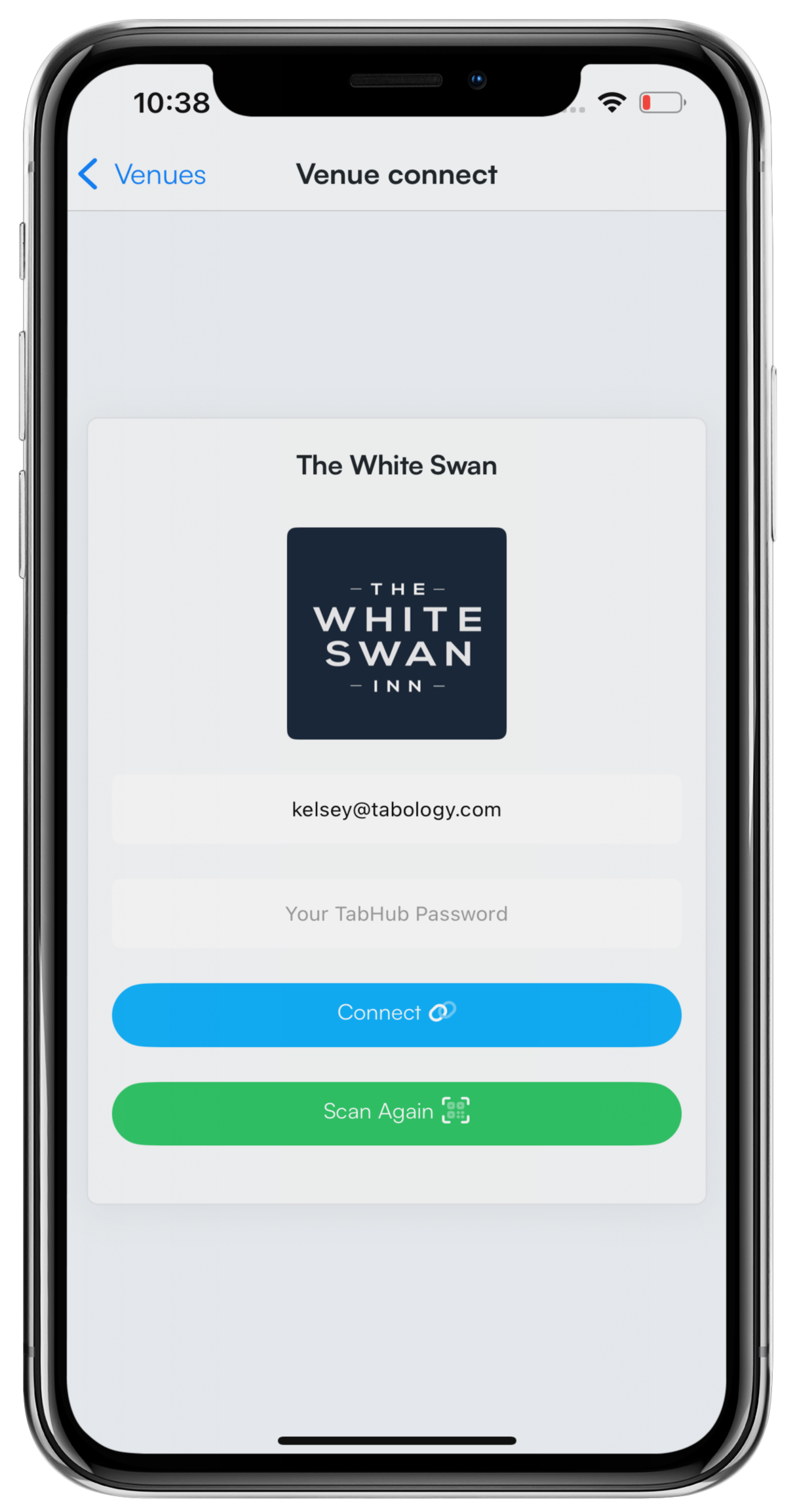 When you have downloaded the Tabology Management app, you will then need to connect your venue(s).