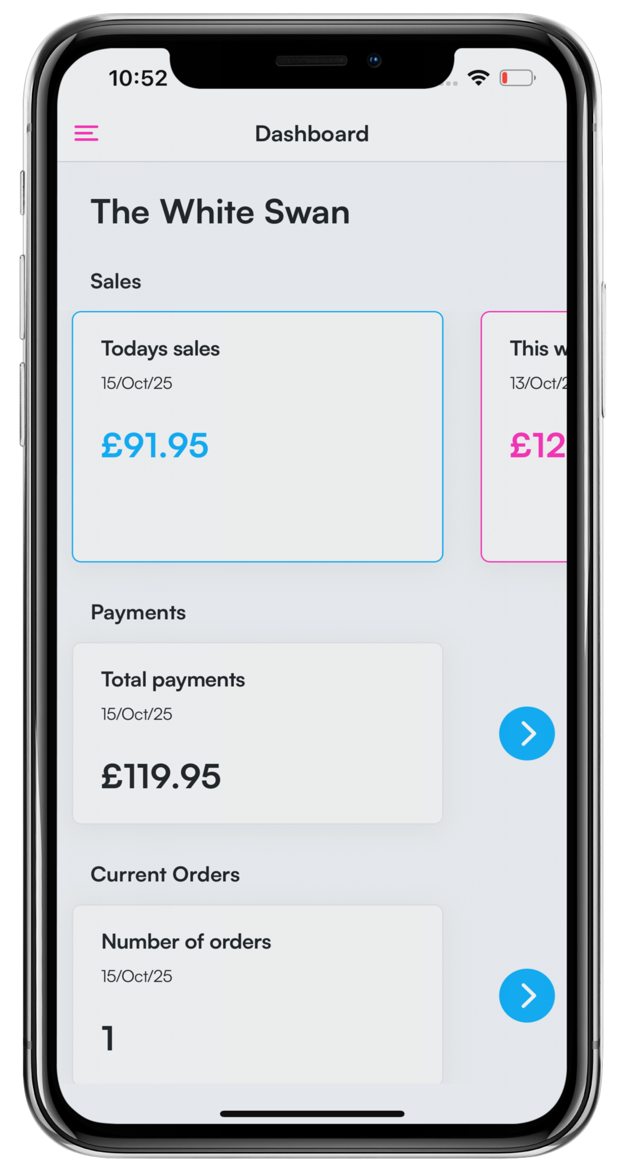 Your dashboard will now display. To see the most up to date sales, drag the screen down to refresh.