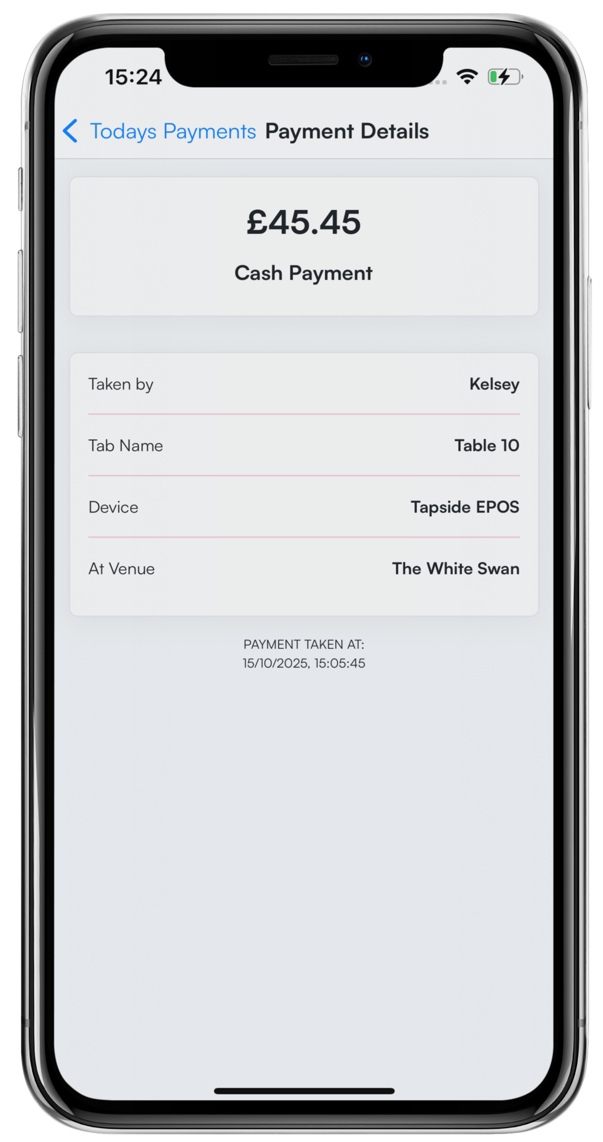 - The date and time the payment was taken