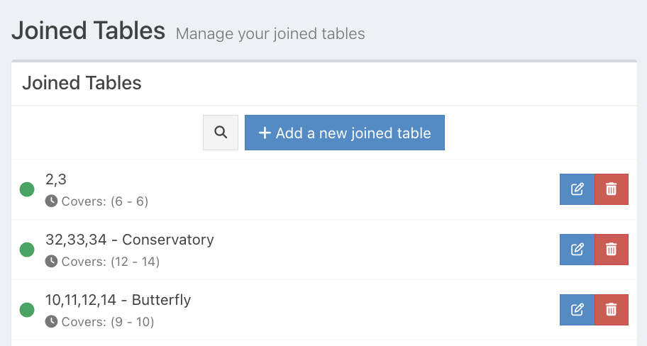 You can configure joined tables to specify which tables can be combined to accommodate larger bookings. When a guest books online via your booking widget, booking URL, or Reserve with Google, the system will automatically check these combinations and confirm the booking if the required capacity can be met by joining the tables together.