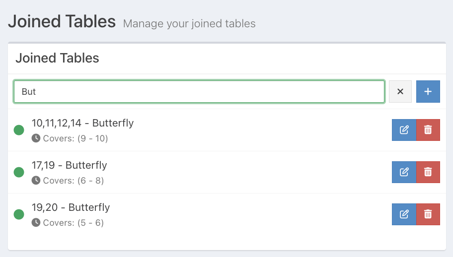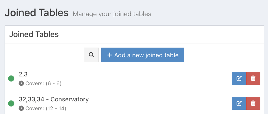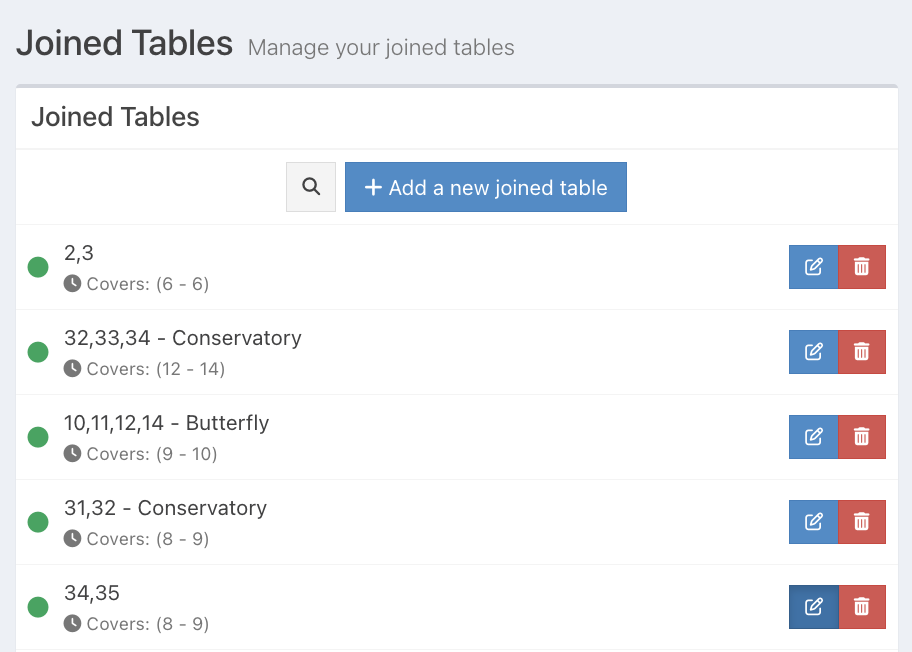 - Set a maximum number of covers (This cannot exceed the combined maximum number of covers on the tables being joined)