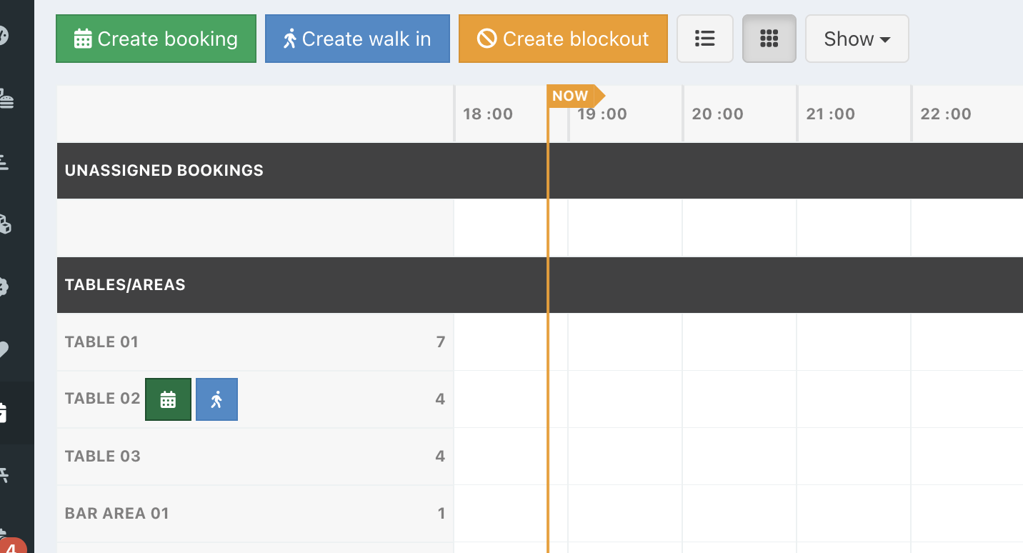 Recording walk-ins ensures your table availability stays accurate, preventing tables that are already occupied from appearing available for last-minute bookings.