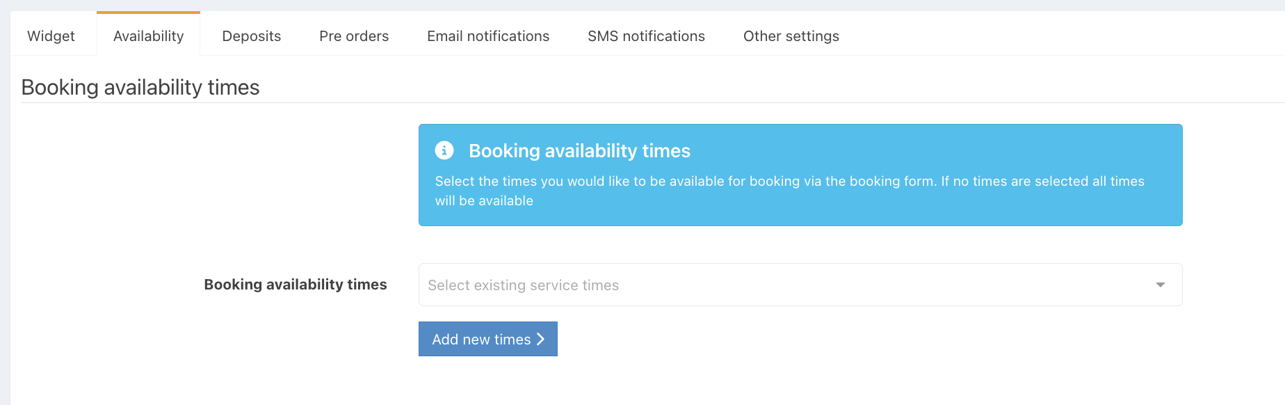 If you haven't already set your service times, you can create them by clicking the blue Add new times button.
