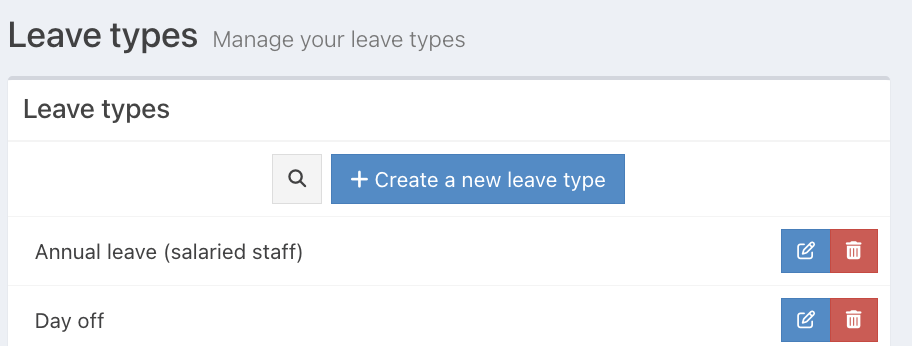 Click the grey magnifying icon next to the Create a new leave type button.