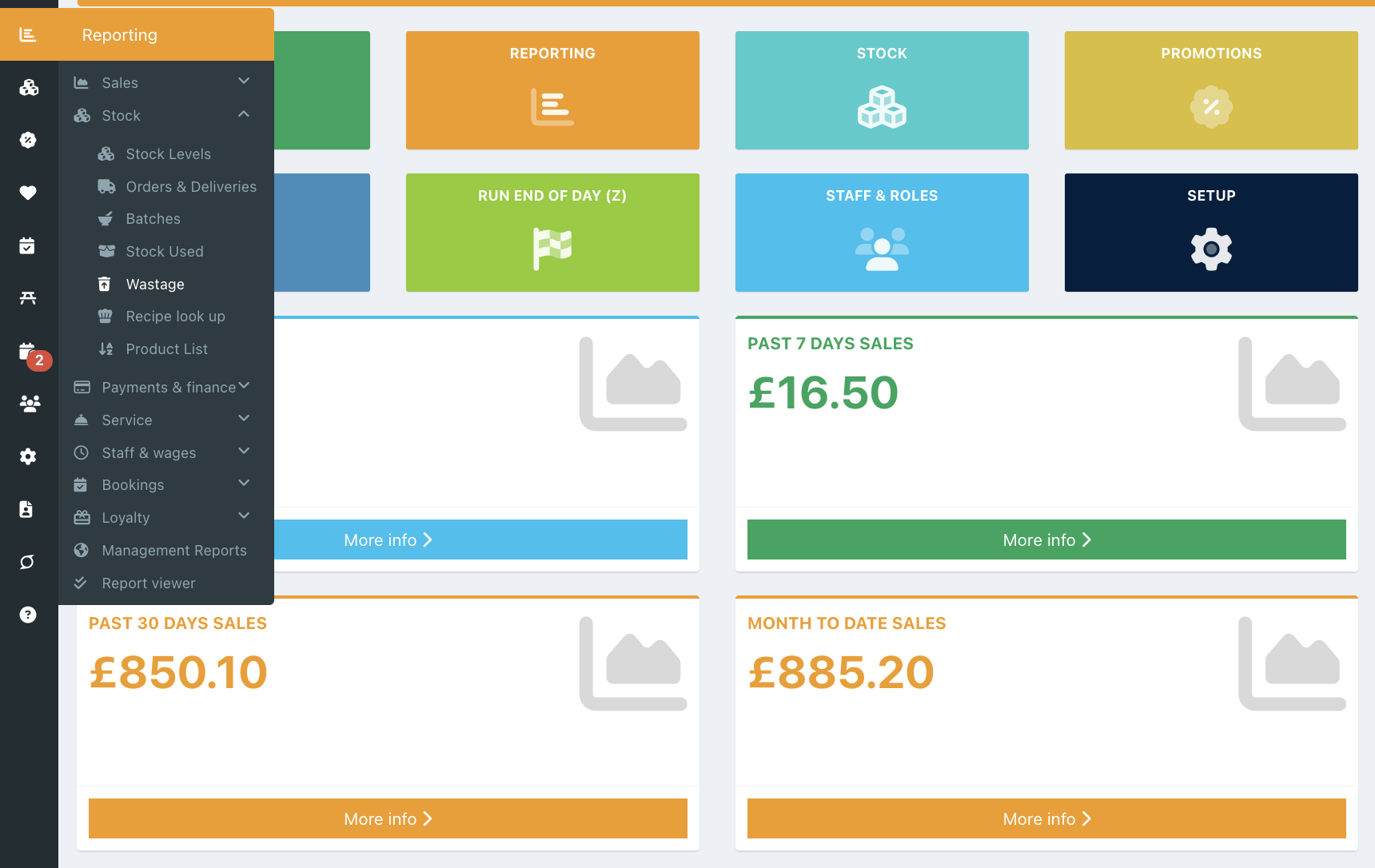 To view the Wastage report, go into your back office and select Reporting > Stock > Wastage.