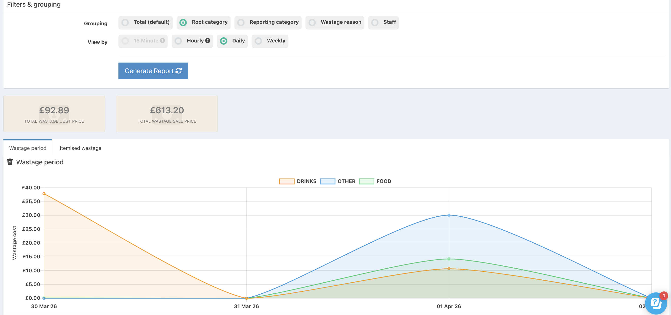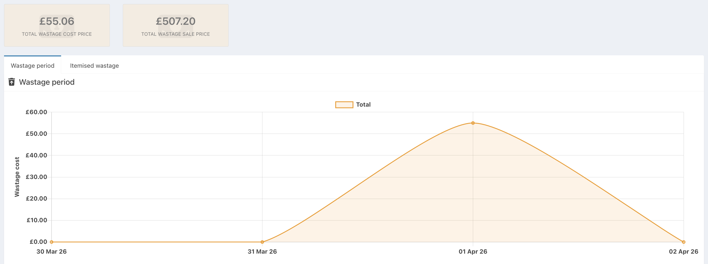 On the Itemised Wastage tab, you can view the total wastage by product for the period, ordered by the products with the highest wastage cost.