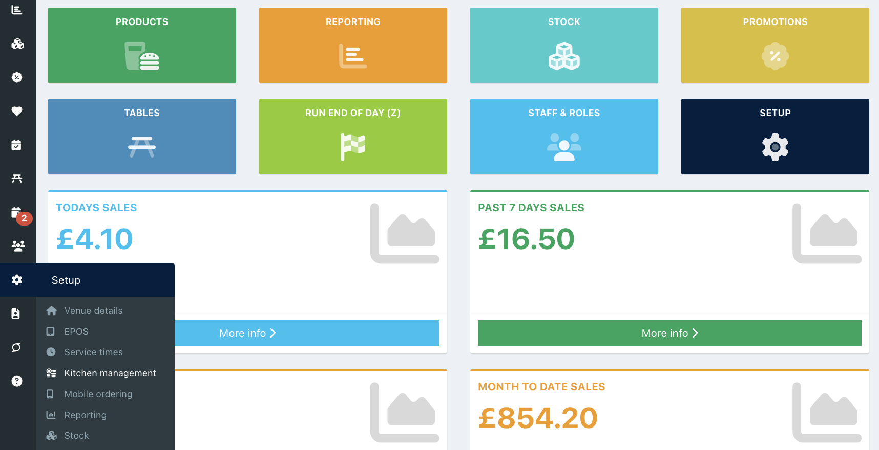To increase the space on order tickets, go into your back office and select Setup > Kitchen management.